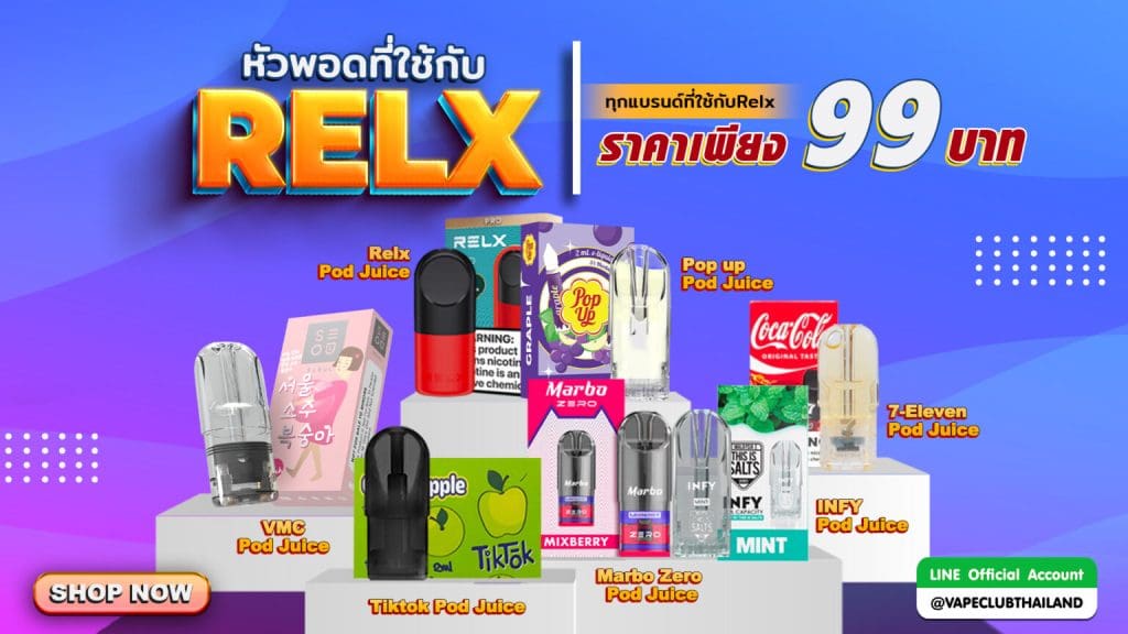 จัดโปรเอาใจสายสูบเปลี่ยนหัวน้ำยา แค่ใช้Relx จะเลือกแบรนด์ไหน ยี่ห้ออะไรก็จ่ายราคาเดียว มีให้เลือกมากมายหลายยี่ห้อ