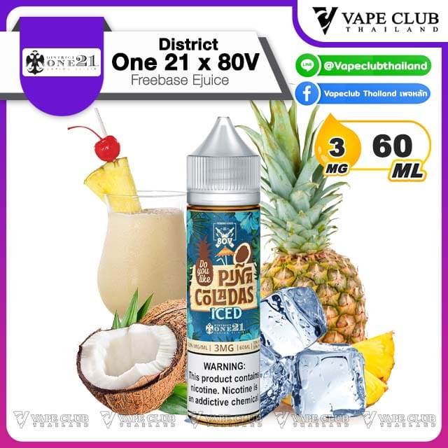 น้ำยาฟรีเบสสายตรงจากอเมริกา บอกเลยว่าความนัวของกลิ่นและรสชาติของน้ำยา และความมีมิติในทุกคำที่สูบ ทำให้ District One 21 เป็นน้ำยาสายขนมยอดดวงใจของใครหลายคน และรอบนี้ District One 21 มาจับมือทำร่วมกับ 80V บริษัทผู้ผลิตน้ำยามายาวนานกว่า 10 ปี รังสรรค์รสชาติใหม่ๆ ออกมาให้แฟนๆ ได้ลองชิมกัน มีนิโคตินให้เลือกถึง 2 ระดับ และแน่นอนว่ากลิ่นและรสชาติยังคงความเอกลักษณ์ไว้อย่างแน่นอน