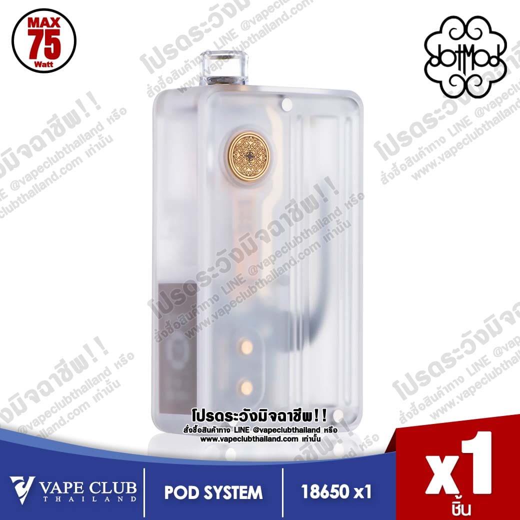 พอต Dotmod DotAIO V2 Lite Pod Kit จะพาคุณไปเจอประสบการณ์ใหม่ๆ แบบไฮเอ็นด์สุดๆ เรียบหรู แต่แฝงไปด้วยเทคโนโลยีสุดล้ำ ปรับเปลี่ยนรูปทรงจาก V2 มาเล็กน้อยแต่ระบบยังคงเดิม เช่นปรับไฟได้ถึง 75 วัตต์ พร้อมหน้าจอ LCD มีโหมดใช้งานถึง 6 โหมด Auto display / Wattage display / Temperature display / Bypass display / setting โดยปรับจากปุ่มข้างๆ +- หน้าจอ TFT ที่สามารถดูรายละเอียดได้ครบถ้วน DotMod หน้าจอครบทุกฟังก์ชั่น สะดวกในการใช้งาน และยังพัฒนาชิปเซ็ทจาก V1 และใช้กับน้ำยาได้ทั้ง Freebase และ Saltnic ตัวเครื่องสามารถสามารถปรับแต่งประตู ปุ่ม แผงภายใน รวมถึงดริปสำหรับการสูบ