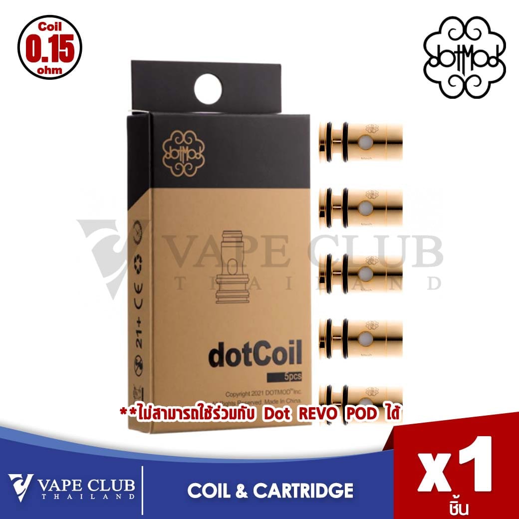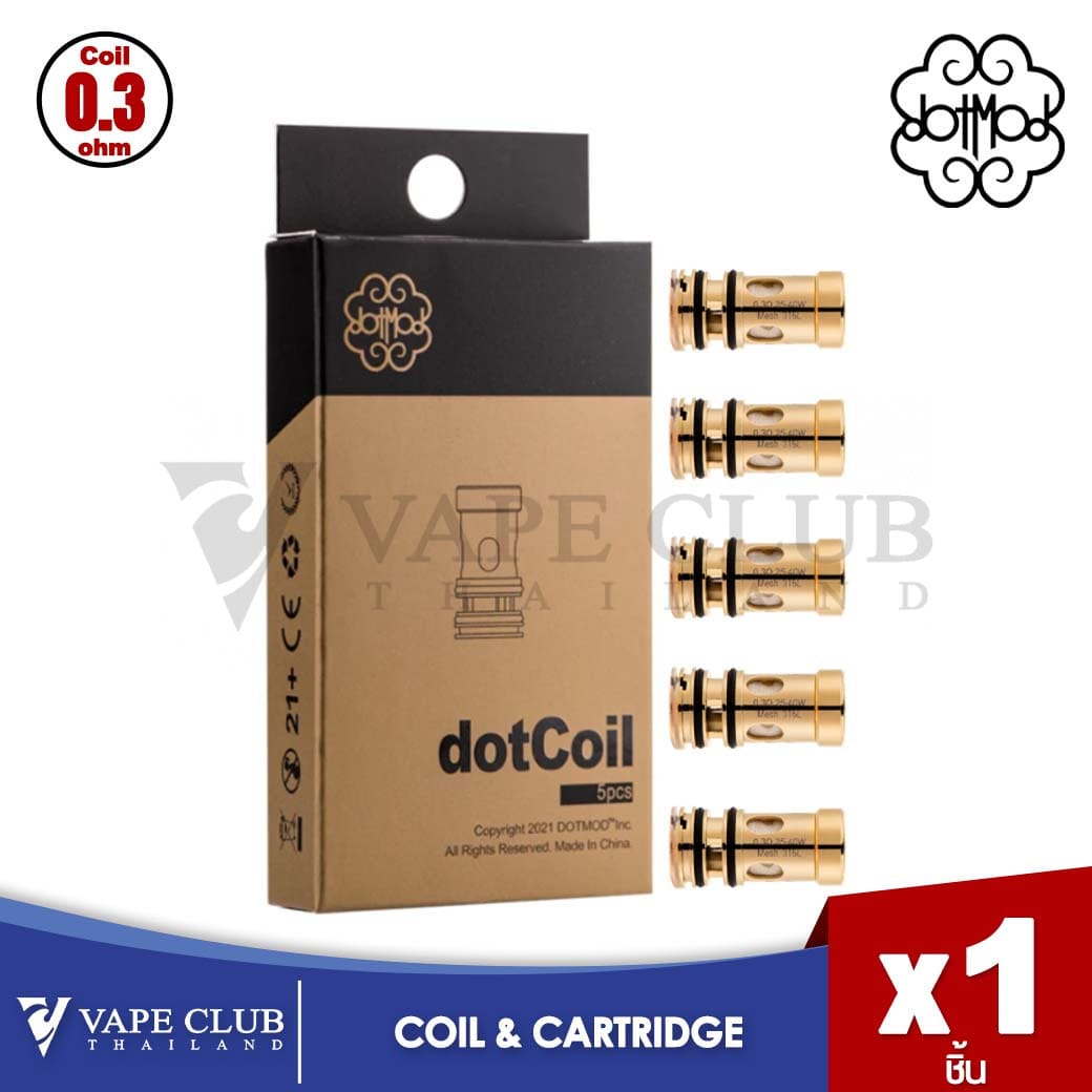 Dotmod Dotcoils คือ coils ที่สามารถใช้ร่วมได้กับ Dotmod Dottank ขนาด 25mm ซึ่งใช้งานได้กับ Dotmod Dotstick Revo Pod Kit และ Dotmod Dotstick Pod Kit และยังใช้ได้กับ Dotmod DotAio V2 Replacement Tank ที่ใช้กับ Pod รุ่น Dotmod DotAIO V2 Pod Kit ได้อีกด้วย และ Dotcoils ยังมีค่าโอห์มให้เลือกหลากหลายขนาดอีกด้วย
