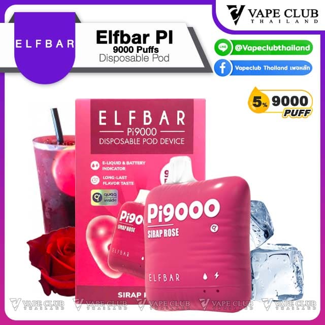 พอต Elfbar PI 9000 Puffs Disposable Pod พอตสูบจุใจถึง 9000 คำ จุน้ำยามากถึง 18ml มาพร้อมกับกลิ่นหอมที่มีเอกลักษณ์แบบสุด
