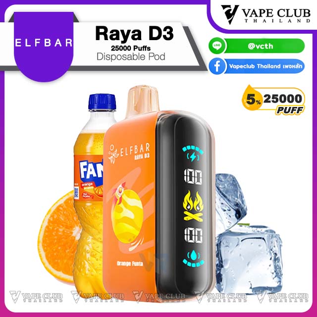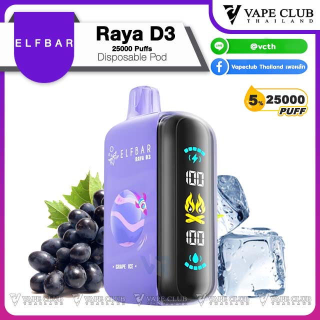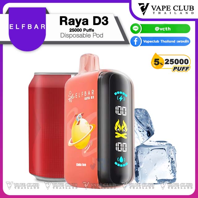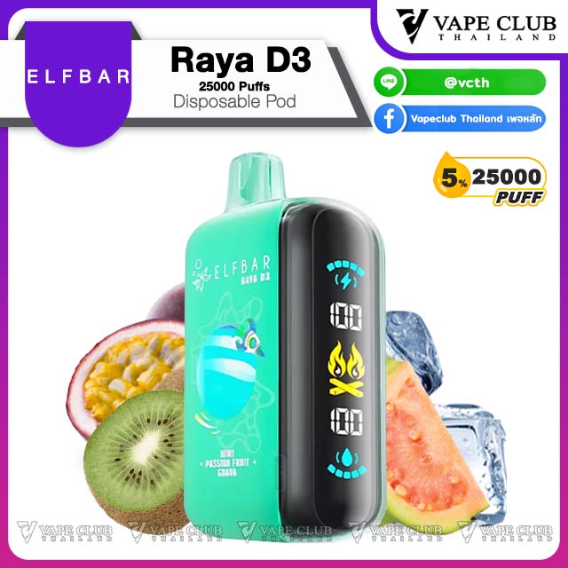 - Elfbar Raya D3 25000 Puffs Disposable Pod 1 ชิ้น