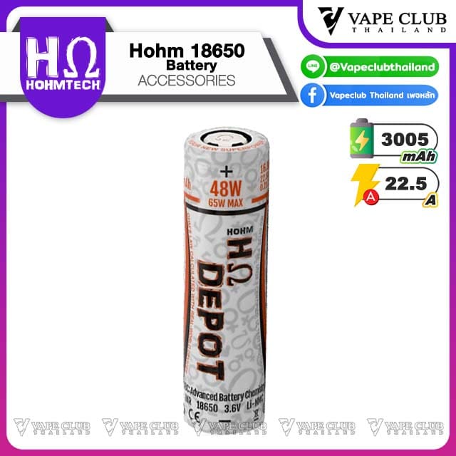 - ถ่านชาร์จ HOHM DEPOT 22.5A – 16.8A | 3005mAh | 3.6V