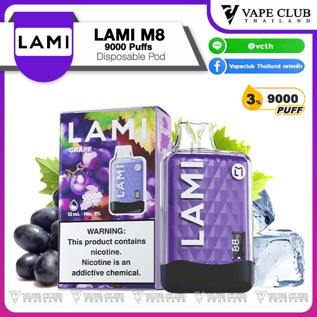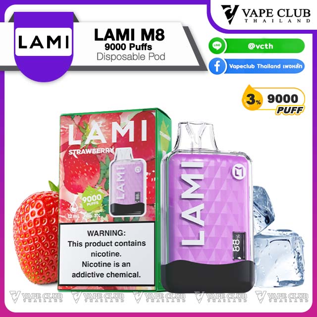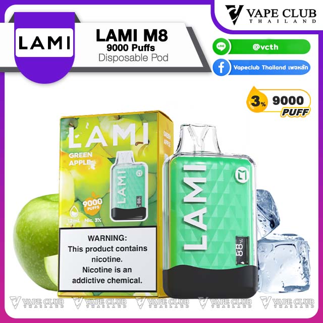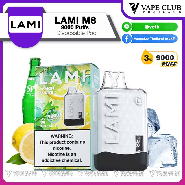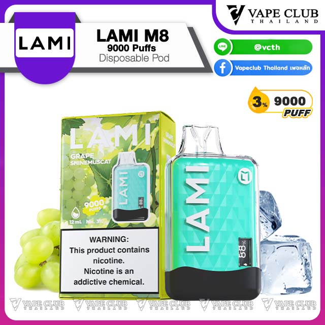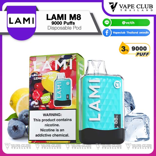 - LAMI M8 9000 Puffs Disposable Pod มีขนาดเล็กที่จุเยอะ น้ำหนักเบา พกพาสะดวก แบตอยู่ได้ยาวนาน