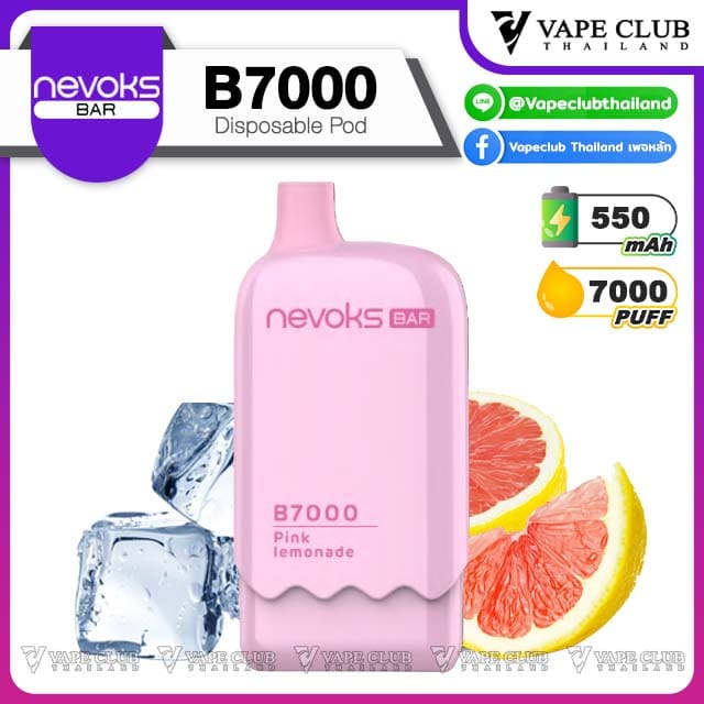Nevoks B7000 Puffs Disposable Pod พอดใช้แล้วทิ้งจากค่าย Nevoks ที่พัฒนาเครื่องหลายๆรุ่น จนมาสู่พอดใช้แล้วทิ้งในรุ่นนี้ ที่ออกแบบมาถึง 7000 คำซึ่งถือว่าเยอะพอสมควร และดีไซน์ยังออกแบบมาได้สวยงาม พกพาสะดวก และมาพร้อมด้วยนิโคตินถึง 5% ที่สูบแล้วอิ่มโดยไม่ต้องสูบบ่อยๆ แถมยังสามารถชาร์จไฟซ้ำได้อีกด้วย