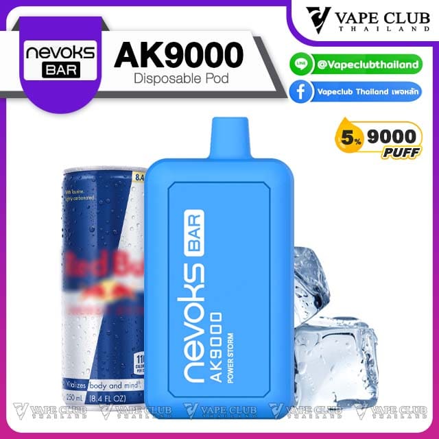 พอต Nevoks Bar AK9000 Puffs Disposable Pod พอตใช้แล้วทิ้ง ขนาด 9000 คำ บอกเลยว่าน้ำยารสชาติดีแบบสุดๆ แถมตัวเครื่องยังดีไซน์ดูเท่ห์และมีลูกเล่นตรงเครื่องเป็นไฟสีต่างๆvสวยงาม ตัวเครื่องออกแบบให้สามารถจับได้ถนัดมือ พอตจุน้ำยาถึง 18 ml ใช้ Mesh Coil ช่วยให้เรื่องรสชาติออกมาได้ดีเยี่ยม มีแบตเตอรี่ในตัวขนาด 550 mAh และรูชาร์จ USB Type-C สามารถชาร์จซ้ำได้อย่างสบายๆ น้ำยานิคโคติน 5% ช่วยให้การสูบของคุณเต็มอิ่มได้ในทุกๆคำ