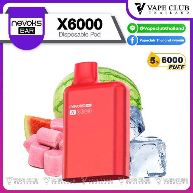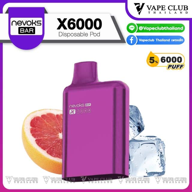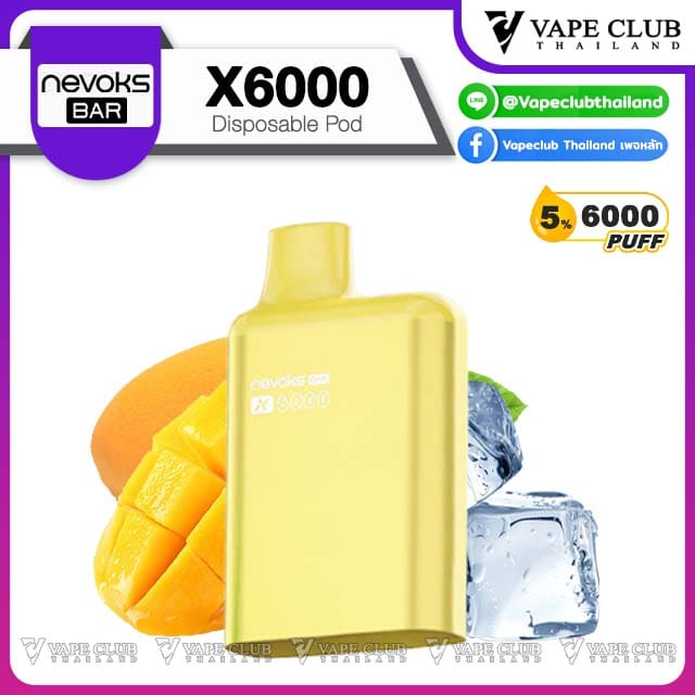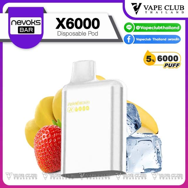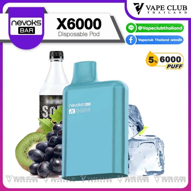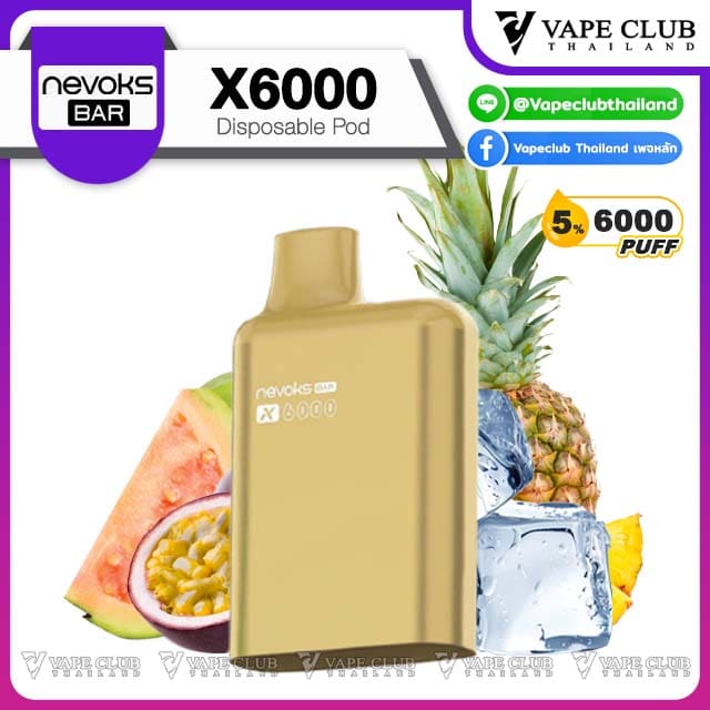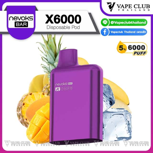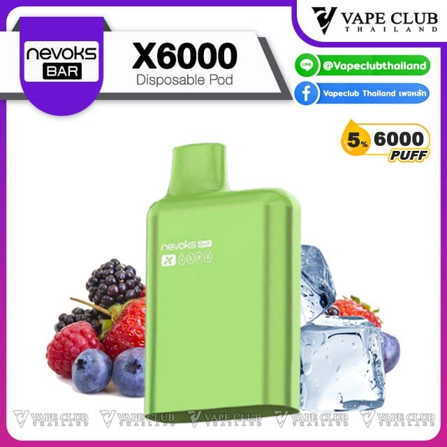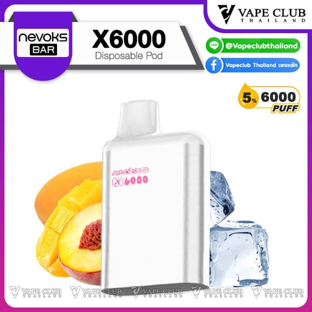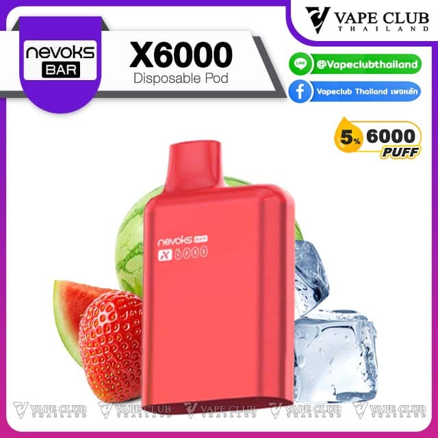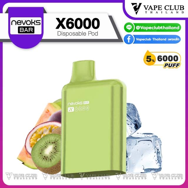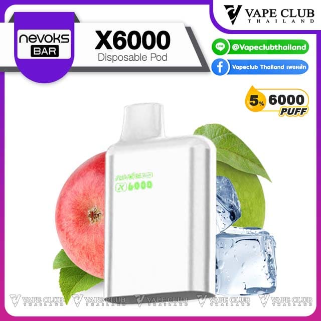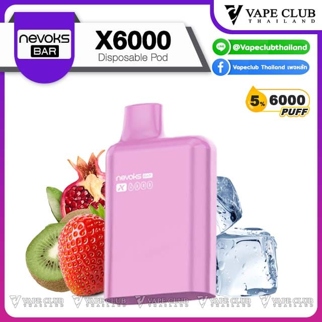 พอต Nevoks Bar X6000 Pod Juice พอตน้ำยารสชาติดี จากแบรนด์ Nevoks ที่ออกแบบมาให้ใช้กับเครื่องรุ่น X6000 ที่ดีไซน์สวยงามและยังเป็นพอตแบบใช้แล้วทิ้งที่สามารถเปลี่ยนหัวน้ำยาได้อีกด้วย