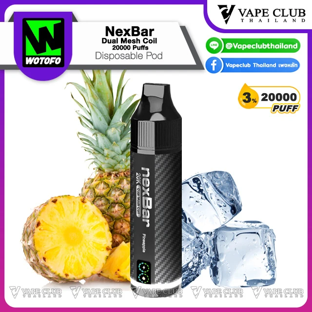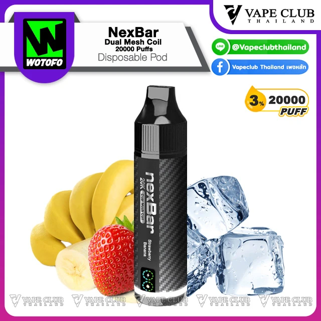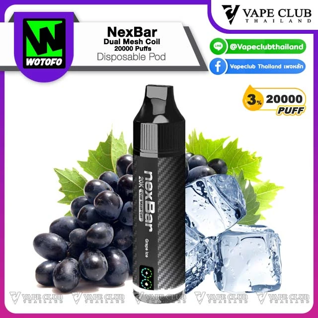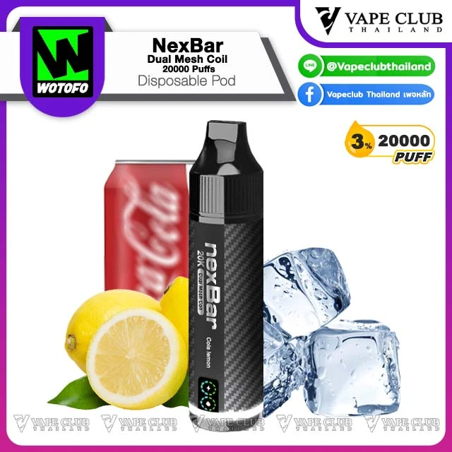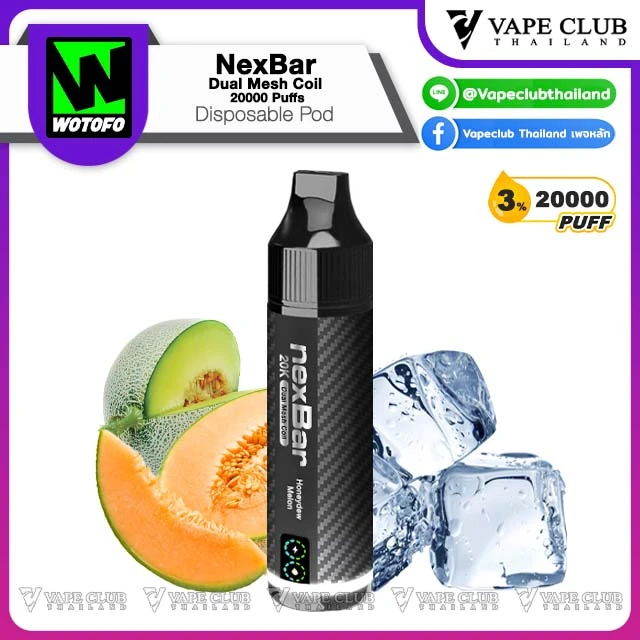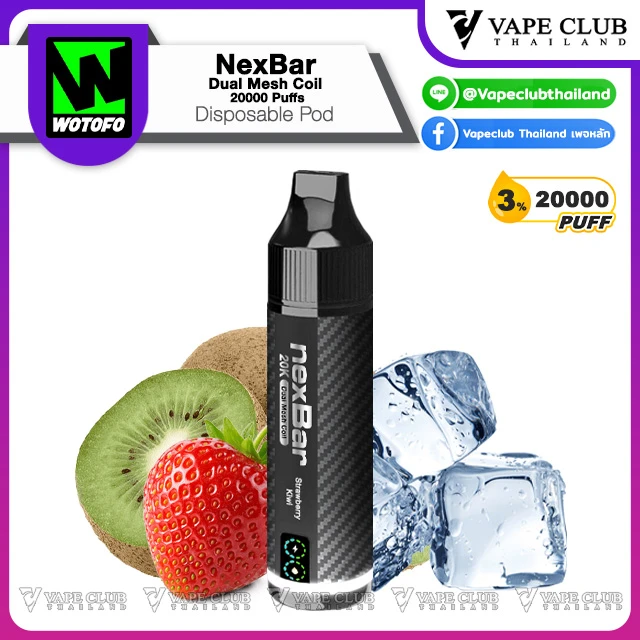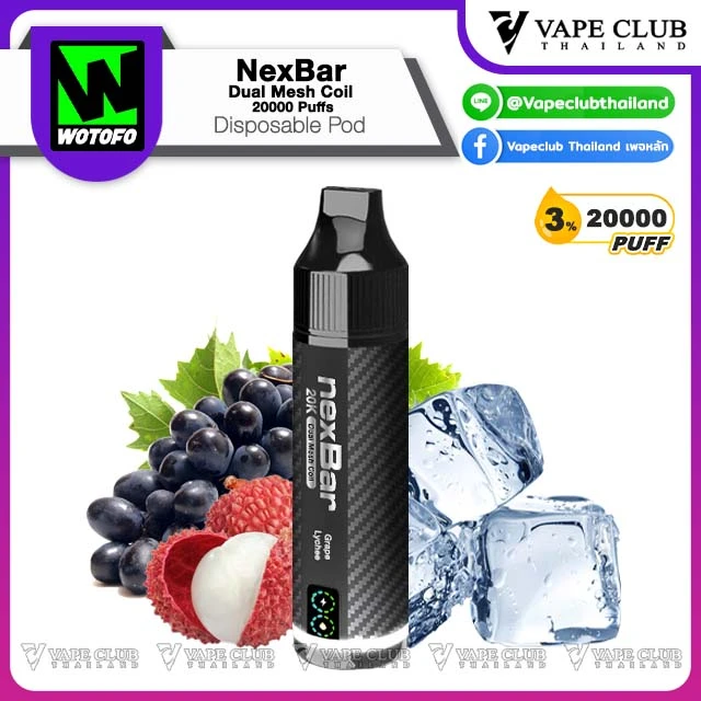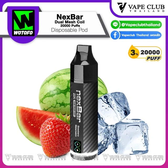 NexBar Dual Mesh Coil 20000 Puffs Disposable Pod พอตใช้แล้วทิ้งรุ่นอัพเกรดจากแบรนด์ Wotofo ที่รอบนี้พาเจ้า NexBar Dual Mesh Coil 20000 Puffs Disposable Pod มาเสริฟให้นักสูบด้วยความจุน้ำยา 20000 คำ พร้อมระบบ Dual Mesh Coil ที่ขึ้นชื่อเรื่องการรีดกลิ่นและรสชาติของน้ำยา รูปทรงแท่งคุ้นตา พกพาง่าย น่าใช้งาน