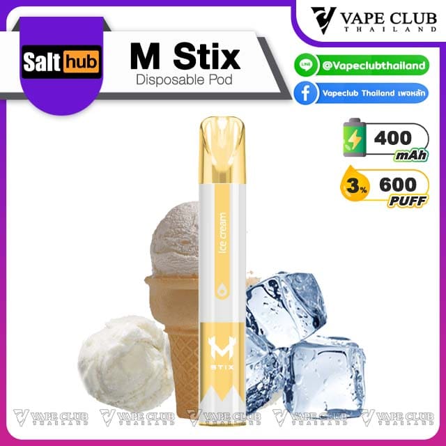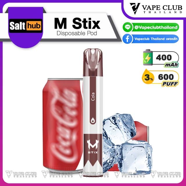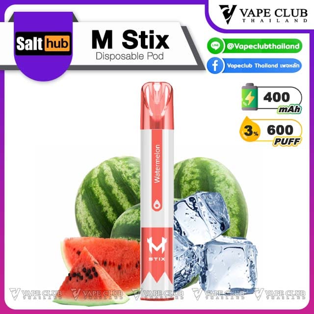 Salt Hub M Stix Disposable Pod 600 Puffs เป็นพอตใช้แล้วทิ้งที่ราคาถูก จำนวน puff สูบได้อยู่ที่ประมาณ 600 คำ ฟิวสูบแน่นแต่ให้ความสบาย นิคโคติน 3% (นิค 30) กลิ่นแต่ละรสชาติมีความโดดเด่น และชัดมาก ใครเน้นกลิ่นและชอบเย็นๆ ตอบโจทย์ คุ้มค่าในการที่ได้ซื้อไปใช้ รูปทรง วัสดุ และแพคเกจ ทำออกมาได้สวยงามเกินราคา สมกับเป็นแบรน salthub (ที่ดังจากน้ำยา Marbo) แอดมินแนะนำให้ซื้อรุ่นนี้ไปใช้ตอบโจทย์กับทุกกลุ่มแน่นอน