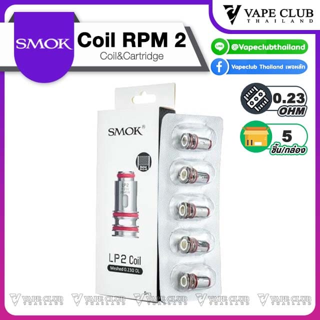 • SMOK RPM 2 เป็นคอยล์ดั้งเดิมที่เข้ากันได้กับพอตหลายรุ่น เป็นคอยล์ที่สามารถเปลี่ยนได้ง่าย มาพร้อมกับคอยล์หลากหลายขนาด