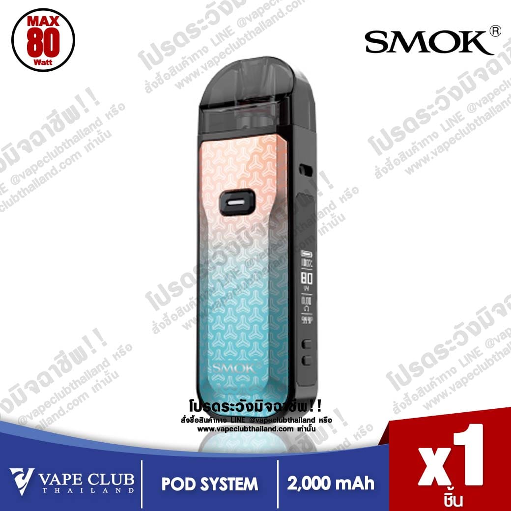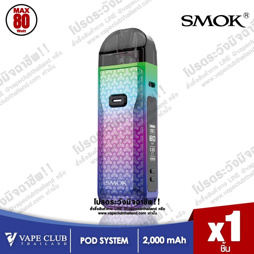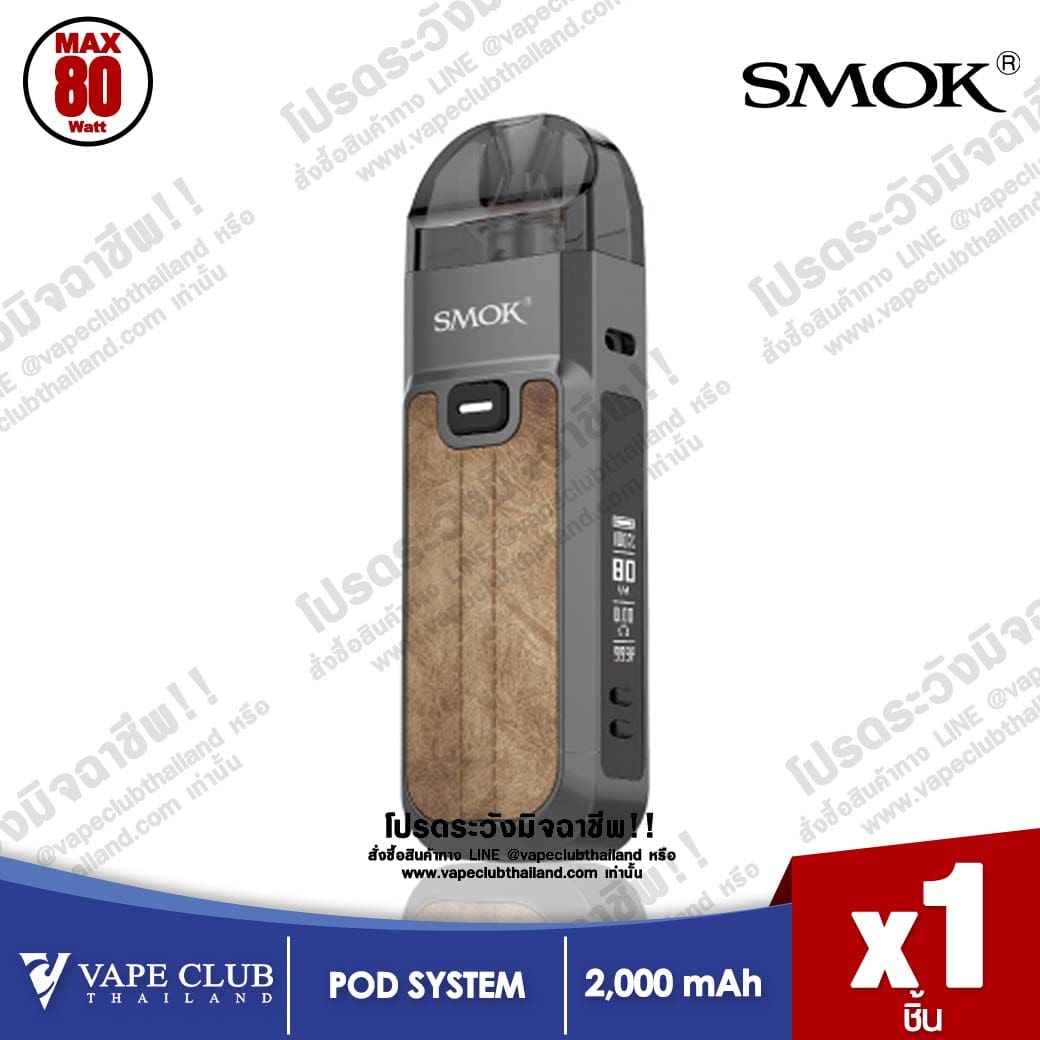 Smok Nord 5 Pod Kit พอดบุหรี่ไฟฟ้าแบบเติมน้ำยาตัวใหม่จากค่าย Smok มาพร้อมแบตเตอรี่ในตัวขนาด 2000mAh ชาร์จไวด้วย USB Type-C สามารถจ่ายไฟได้สูงสุดที่ 80W จอแสดงผล OLED 0.69 นิ้ว มีให้เลือกทั้งหมด 12 สี ทั้งแบบ Regular (สีอะครีลิค) และ Leather (หนัง)