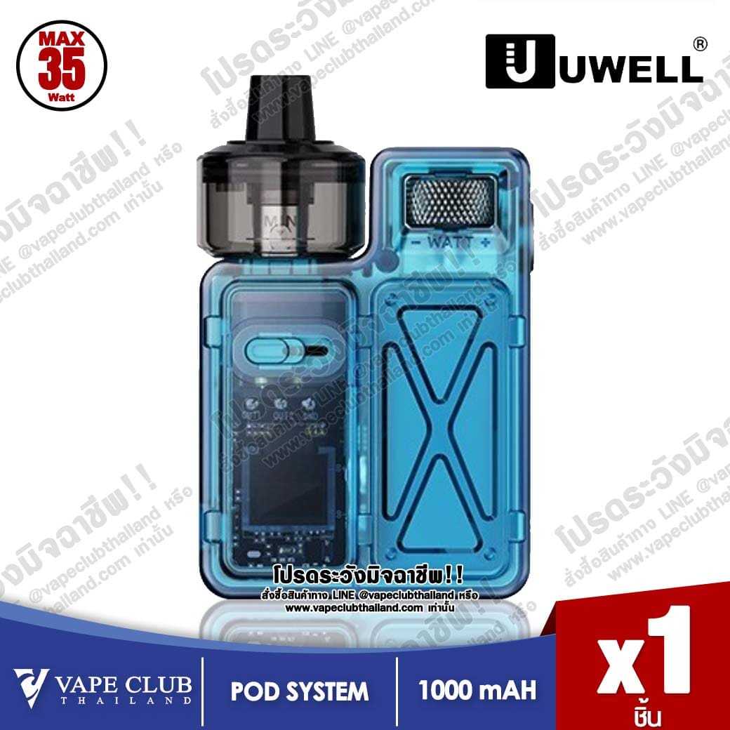 Uwell Crown M Pod mod Kit เหมาะสำหรับน้ำยา Salt Nic และ Freebase บุหรี่ไฟฟ้าแบบ AIO จากค่ายดัง Uwell มีการออกแบบดีไซน์มาได้สวยงาม แข็งแรง ดูน่าใช้งานมากๆ พกพาได้ง่าย ขนาดพอดีมือ ตัวเครื่องเป็นแบบโปร่งใสที่เท่ไม่เหมือนใคร แบตเตอรี่เยอะความจุอยู่ที่ 1000mAh โดยชาร์จแบบ Type-C อย่างเร็ว กำลังวัตต์ได้สูงสุดที่สามารถปรับเองได้ถึง 5-35W มาพร้อมปุ่มที่ล้อหมุนเลื่อนปรับวัตต์ง่าย พร้อมเทคโนโลยี PRO–FOCS ช่วยเพื่มกลิ่นและรสชาติได้ดีขึ้น เครื่องพอตเป็นแบบกดปุ่มสูบ และยังปรับรูลมของอากาศได้ ความจุของหัวพอต 4 ml. เติมน้ำยาได้ง่ายมาก และยังมีโหมดเอาต์พุตคู่ที่ใช้คู่กับคอยล์ Meshed-H 0.8Ω/0.4Ω CROWN M Twin-coil (MTL & DTL) แถมยังมีคอยล์คอยล์สำรองมาให้อีกแบบ 0.6Ω สำหรับฟีลสูบนั้น สูบได้ทั้ง 3 แบบด้วยกัน (MTL & DTL & RDL)