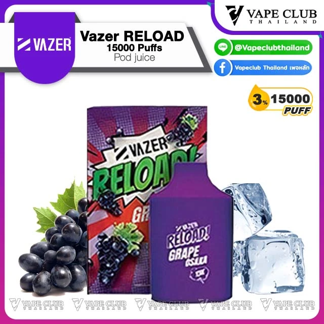 สเปค Vazer RELOAD 15000 Puffs Pod Juice