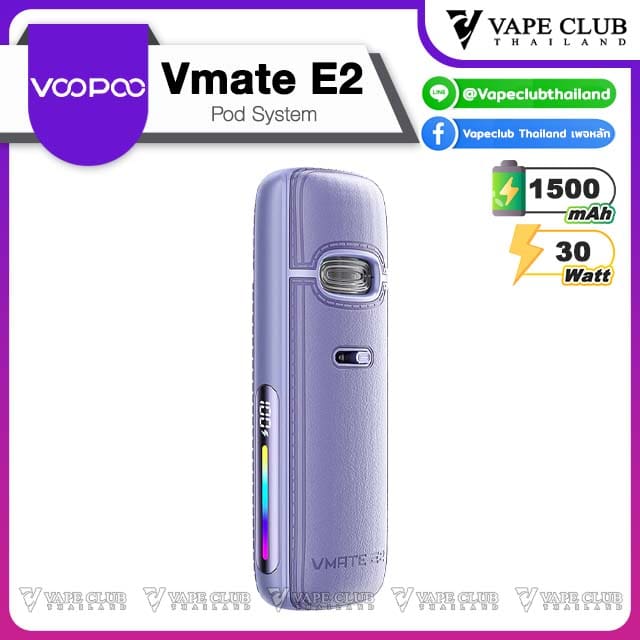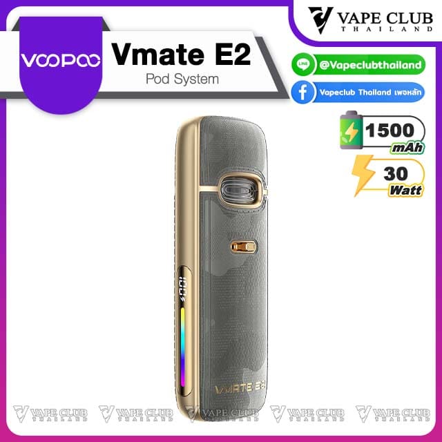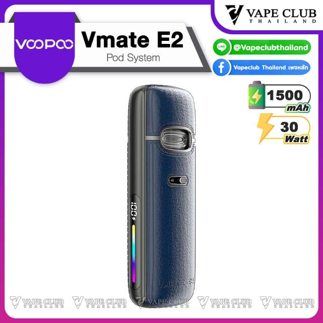 Voopoo Vmate E2 Pod System ถ้าคุณกำลังมองหาพอดที่ใช้ง่ายและมีคุณภาพ Voopoo Vmate E2 Pod System คือหนึ่งในตัวเลือกที่น่าสนใจ ด้วยดีไซน์ที่สวยหรู ทันสมัย มาพร้อมวัสดุหนังด้านข้างที่ให้สัมผัสหรูหรา เพิ่มความทนทาน ฝาครอบเป็นแม่เหล็กกันฝุ่น แถบไฟแสดงสถานะแบตเตอรี่ LED Light Bar แสดงผลสวยงาม แบตเตอรี่ความจุขนาด 1200mAh และยังชาร์จเร็วด้วย USB Type-C ทำให้คุณสูบได้นานไม่มีสะดุด ตัว Cartridge สามารถเติมน้ำยาจากด้านบนได้สะดวก รองรับทั้งน้ำยา freebase และ salt nic ใครที่อยากได้ฟีลสูบที่เต็มอิ่มและสะดวกสุด ๆ ต้องลอง Voopoo Vmate E2 Pod System ตัวนี้เลย!